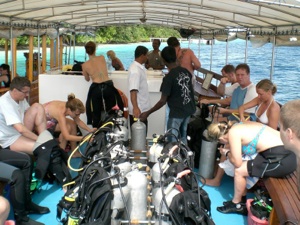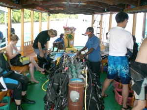 Boat diving was also enjoyable because it was an opportunity to socialise with the dive masters and instructors as well as other co-divers. Usually a day before, the dive centre put up a schedule for the following day - which boat goes to which reef, at what time, how far, and more details as to the dive itself, whether it is suitable for beginners or not (strong currents), etc. If we wanted to go on a boat dive, we had to sign up the day before. We never took the whole day boat diving trip as we didn’t fancy sitting on a boat all day. I remember that during our stay there was one boat going out every morning to the same reef, as they were trying to watch the whale shark that usually appeared in that particular spot. I don’t really know the details so I don’t know whether they met one or not :) We usually went on a boat for 1 dive, sometimes in the morning, sometimes after lunch. Boat dives are usually surcharged.