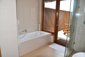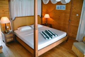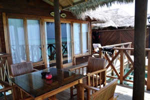 On the island there are three types of accommodation available - standard rooms or superior rooms and bungalows, detached or two-storey huts with rooms on both levels. There area also 12 water bungalows available. We decided to go wild and we booked one of the water bungalows. We got probably one of the best ones as it was at the end of the row, facing west and least visible and least overlooked from the island and the beach.