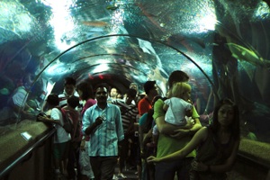 The entry to Sentosa is 3 SGD and you can get there by Sentosa Express from the mainland in about 10 min. You can also take a taxi or go by bus or just have a walk on a newly opened covered boardwalk and admire the views. We took a taxi from our hotel and went directly to Underwater World. It cost about 15 SGD (including the 3 SGD entry per person).