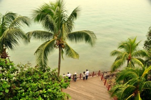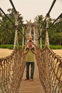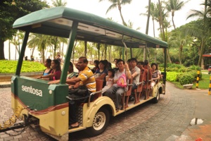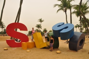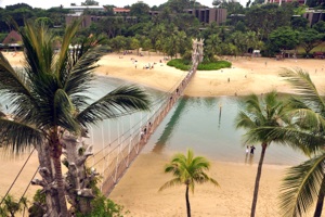 Wstęp/wjazd na wyspę kosztuje 3 SGD i można tam dojechać kolejką Sentosa Express z głównego lądu (jakieś 10 min). Można również wjechać samochodem/taksówką, autobusem, albo też skorzystać z niedawno otwartego zadaszonego deptaka i podziwiać widoki podczas spaceru. My wsiedliśmy w taksówkę i z naszego hotelu kosztowało to jakieś 15 SGD (łącznie z wstępem 3SGD / na osobę) - dojazd pod samo oceanarium.
