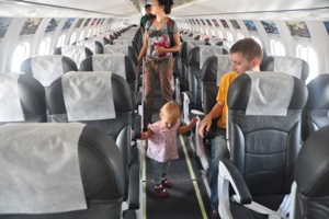 The flight went smoothly and on time. The only thing I didn’t like was the very low and loud noise it makes when taking off, but the flight in general feels and looks the same as in any other aircraft and you don’t really feel any difference. On board we got complimentary juice, mini cold hotdog and some peanuts.