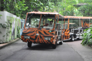 Po terenie zoo jeździ też tramwaj którym bez problemu można się przemieszczać (5 SGD płatne przy kupnie głównego biletu). Jest także wypożyczalnia wózków, czterokolowych wózków dla dzieci (2 się mieści) a także czterokołowe fotele, podobne do tych którymi czasami jeżdżą staruszkowie po chodnikach. My dotarliśmy do zoo o 10:30 i wózków dla dzieci już nie było więc nie mają ich zbyt wiele.