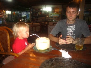W pakiecie mieliśmy wliczone śniadania, obiady/kolacje jadaliśmy w pobliskich restauracjach w promieniu 5 min od hotelu. Kilka razy zaliczyliśmy też kolacje w hotelowej i przy plażowej restauracji, jako że musieliśmy wykorzystać te 10000 THB które dostaliśmy. Starczyło nam to na jakieś 3 czy 4 posiłki z deserami i koktajlami. Poza hotelem oczywiście było dużo taniej i głównie zajadaliśmy się lokalnymi specjałami.