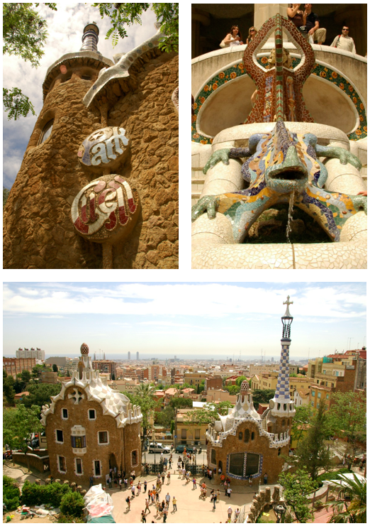Park Guell is another Gaudi’s work. It’s a big park/garden complex that looks a bit like from a fairy tale. Actually all Gaudi’s works look like from fairy tales. At the entrance to the park there are two funny, interesting and unusual buildings as if taken out of Hansel and Gretel, and there is a famous mosaic dragon-like lizard by the main gate.