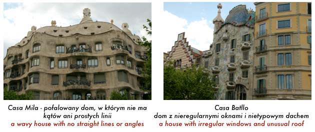 Casa Mila (La Pedrera) i Casa Batllo. Gaudi starał się unikać linii prostych i kątów, więc oba domy wyglądają jak z bajki, i mają nieregularne okna czy balkony.