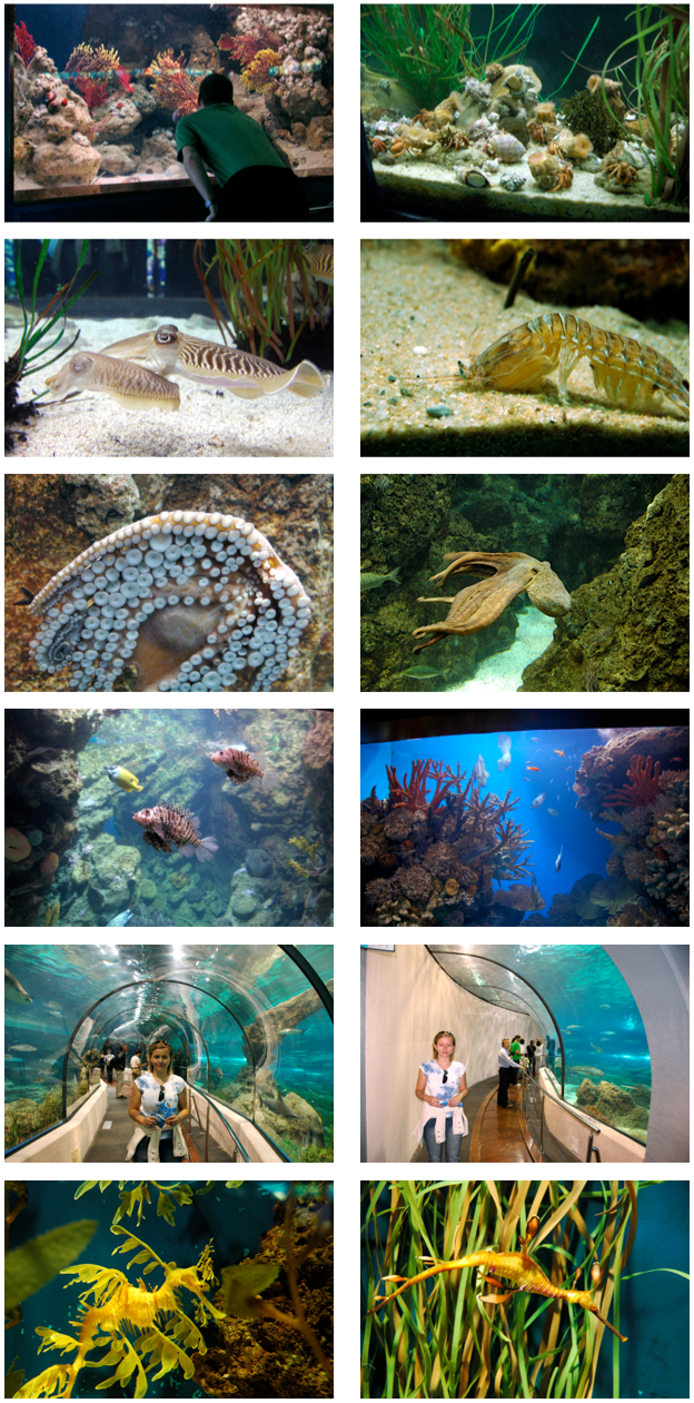 Barcelona Aquarium zaliczyliśmy aby tradycji stało się zadość. Okazało się jednym z najciekawszych i najfaniej zorganizowanych oceanariów które do tej pory zwiedziliśmy. Jest bardzo ładnie urządzone, z tunelami podwodnym i mniejszymi jaki wielkimi zbiornikami. Widzieliśmy tam trochę stworów, których nie widzieliśmy wcześniej w żadnych innych akwariach, na przykład akwarium pełne mątw, krewetki modliszkowe (mantis prawns), ośmiornice czy też bardzo ładne i żadko spotykane koniki morskie wyglądające jak rośliny (dragon seahorse).