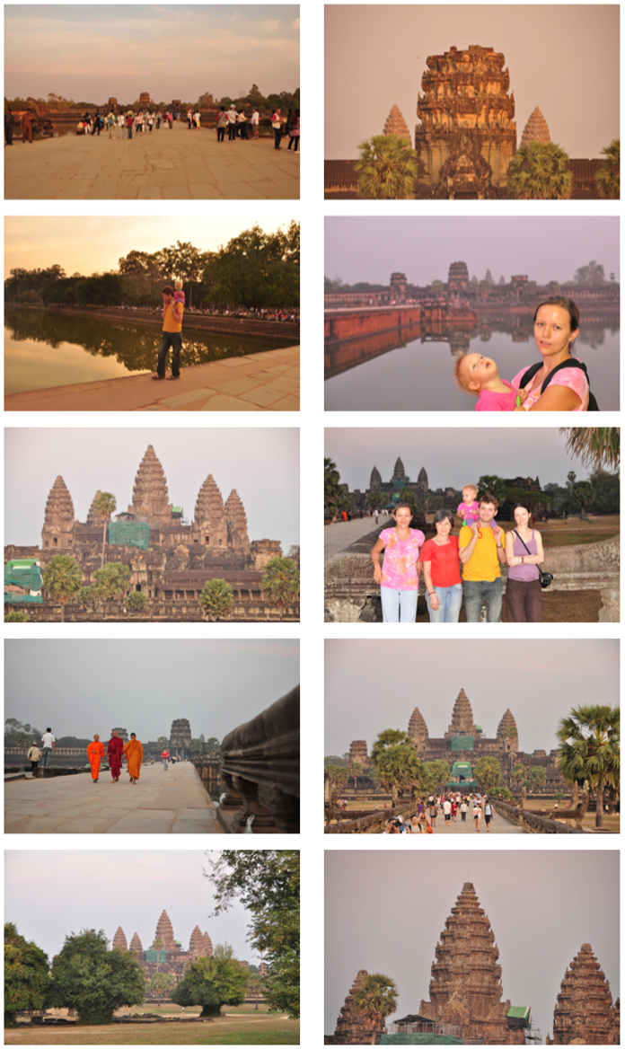Kompleks świątyń Angkor znajduje się na tak dużej powierzchni (ponad 400km2), że potrzeba około tygodnia aby zobaczyć dokładnie wszystkie, zwiedzając od rana do wieczora. My z uwagi na to, że nie jesteśmy zbyt wybredni i mamy małe dziecię (niespełna roczne), skupiliśmy się na najważniejszych i najpopularniejszych punktach. Wykupiliśmy 3 dniowy pakiet wycieczkowy oferowany przez hotel, który zawierał 3 dni zwiedzania busem a w tym 3 obiady, 2 kolacje, butelki z wodą do picia w dowolnych ilościach, 3 dniowa wejściówka na teren świątyń, odbiór z lotniska i odwóz na lotnisko. O nic nie musieliśmy się martwić i byliśmy tylko my sami w piątkę więc nie musieliśmy na nikogo czekać czy konsultować się, a przy małym dziecku różne nagłe sytuacje mogą wyskoczyć więc było idealnie. Takie prywatne zwiedzanie :)