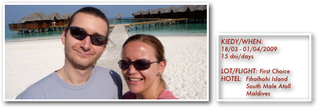 We came back from Fiha pretty ‘well-dived’ again. I came back with a suntan, Piotr came back pale again, we were stuffed with desserts , had a lot of rest and slept really well. The mattress on our bed was one of the most comfortable I ever slept on. The service was nice and all staff was very friendly and helpful. We spent a really nice time in good company and diving was even better than the first time. You can read about our diving and snorkelling in the next entry.
