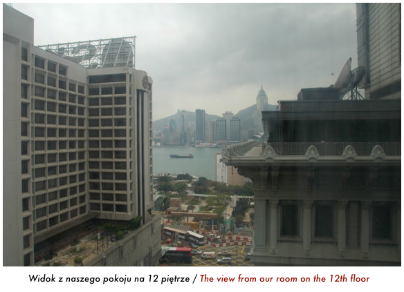 Zatrzymaliśmy się w The Kowloon Hotel, po przeciwnej stronie niź centrum drapaczy, dokładnie przy stacji metra Tsim Sha Tsui, w samym porcie z częściowym widokiem na city. Hotel był porządny a pokój z wygodnym łóżkiem. Sam pokój nie jakiś super ogromny ale też nie mikro. Przed wyjazdem czytałam że wszystkie hotele w HK maja malutkie pokoje więc trochę się obawiałam co zastaniemy na miejscu (zdjęcia tak do końca nie oddają prawdziwego efektu). Okazało się że wcale nie jest tak źle i pokój nam w zupełności wystarczył.