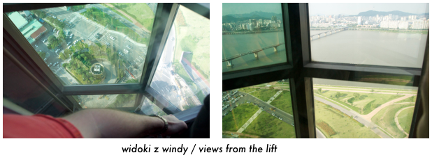 Widoki świetne i pogoda słoneczna więc cały Seul było ładnie widać. W krajobrazie przeważają bloki; rzeka Han ze swoimi mostami bardzo ciekawie się prezentowała z góry. U góry natknęliśmy się na dwie Polki, i zagadałam do nich ale jedna się uśmiechnęła tylko i poszła dalej... nie wzruszyło ich spotkanie z rodakami. Ich strata ;)