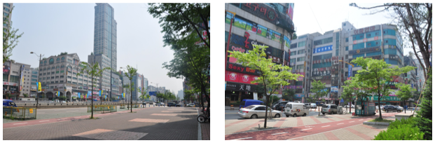Nasz hotel znajduje się w centrum miasta więc wszędzie mamy blisko. Obok hotelu przebiega główna obwodnica Seulowych przedmieść, i zaraz po drugiej stronie znajduje się jeden z wielu parków/skwerów, Sangdong Lake Park do którego chodzę z Mayą jak tylko nie jest zbyt gorąco (do południa lub popołudniu). Ogólnie w mieście przestrzeń jest bardzo dobrze wykorzystana i gdzie tylko jest na to możliwość i miejsce, powstały parki czy skwerki. W budynkach nie ma pustostanów a ścieżki rowerowe to podstawa.