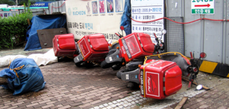 On Wednesday night a typhoon swept through the area north of Seoul. Our hotel is like a bunker so we were safe ;) but I could hear it during the night, the wind and rain, and it was pretty noisy. Piotr slept through and didn’t hear a thing. On Thursday morning it was still a bit windy but it died down pretty quickly and it was sunny in the afternoon. I could see the damage done by the typhoon, before it was cleaned up. There wasn’t a lot of big damage, at least around the hotel, just a few smaller trees uprooted, some rubbish scattered around, and I saw one big business sign that fell down on the pavement.