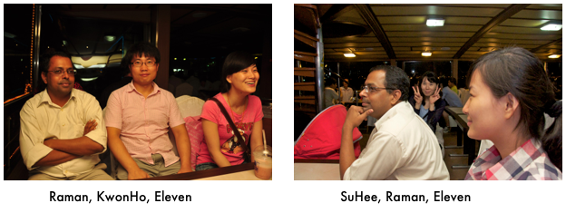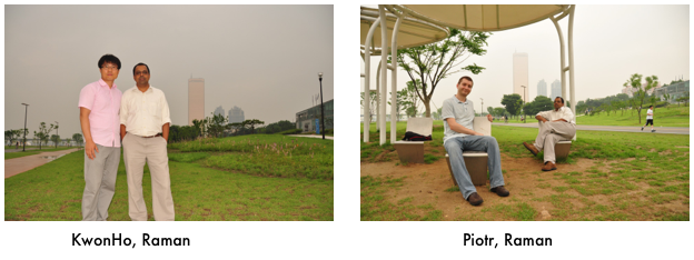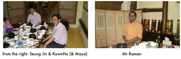Co wieczór chodzimy na kolację z ludźmi z teamu Piotrka. Lokalni (Koreańczycy), z którymi Piotrek najwięcej współpracuje to SuHee i KwonHo. Reszta przyjezdna tak samo jak Piotrek i przylatują do Bucheon na 1-3 tygodnie, a potem wracają i pracują z domu przez 1-2 tygodnie. Większość jest z Suzhou w Chinach - Eleven, Jerry, Elvis, Kathy, ale jest też Raman z Indii,, John ze Szkocji, Arunas - Litwin z USA mieszkający w Suzhou ;), Walter z Belgii. Wszyscy są bardzo sympatyczni i wszyscy mowią po angielsku :)