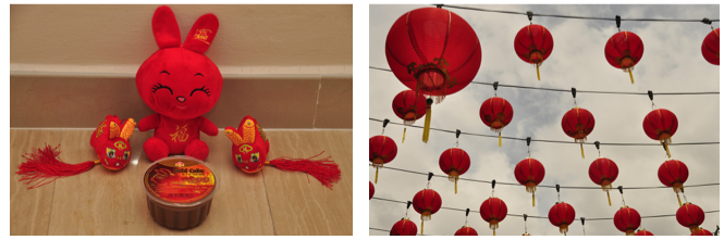 W centrach handlowych i ogólnie w mieście widać porozwieszane czerwone lampiony i dekoracje symbolizujące świętowanie Chińskiego Nowego Roku.