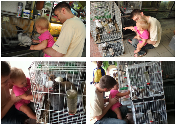 We also visited a few pet shops on the way full of dogs, cats, rabbits and birds so Maya had some fun and close encounters with some of them.