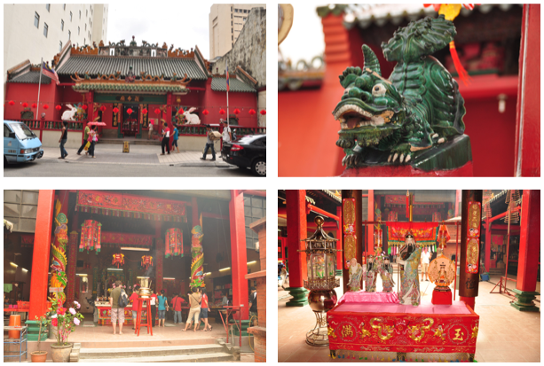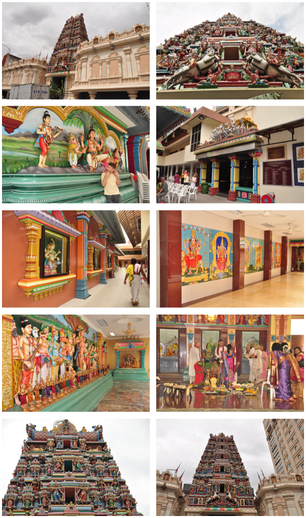 Spacerując po okolicy natknęliśmy się na 3 świątynie. Pierwsza to świątynia Hinduska - Sri Maha Mariamman Temple, zbudowana w 1873. Jej głównym elementem jest 23 metrowa wieża-brama w stylu Południowo Indyjskim, skonstruowana na zasadzie piramidy która ozdobiona jest postaciami Bogów Hinduskich wyrzeźbionych przez artystów z południowych Indii.