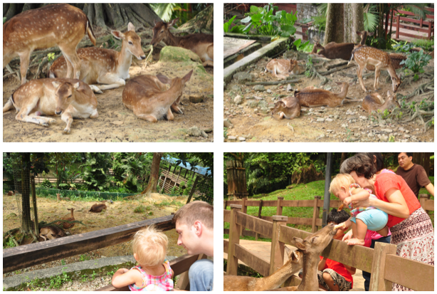 Deer Park doesn’t cover a big area but there were quite a lot of deers, mostly young. There were also mouse deers that they keep in the cages and they look a bit like big mice on four deer legs. We spent very little time here as it was very hot and humid and the park isn’t very big. We mainly stayed under a small canopy and we watched the deers sleeping and hanging around. Maya got a piece of bread form another tourist and was very brave to feed one of the deers, with grandma’s help. The entrance to the park is free.