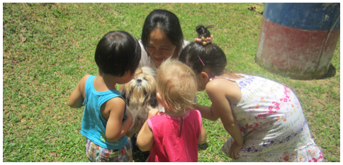 Jeszcze inna nie-japońska twarz to Filipinka, która jest niańką dla dziewczynki o imieniu Rana (2 lata). Rana ma starszeg brata - Ryan i młodszego brata, który urodził się na początku marca (nie znam imienia). Z tą niańką często rozmawiam, bo mówi po angielsku więc jak się spotkamy na placu zabaw to coś tam zawsze pogadamy. Rana w weekendy przychodzi na plac zabaw z tatą, który mówi po angielsku bardzo dobrze więc jak się spotkamy to i z nim trochę pogadam. On sam orygianlnie jest ze Sri Lanki ale nie wiem czy żona też. Przeprowadzili się tu z Japonii i mówią po Japońsku oboje ale imiona ich dzieci nie są Japońskie.