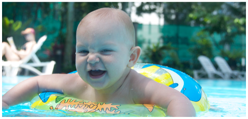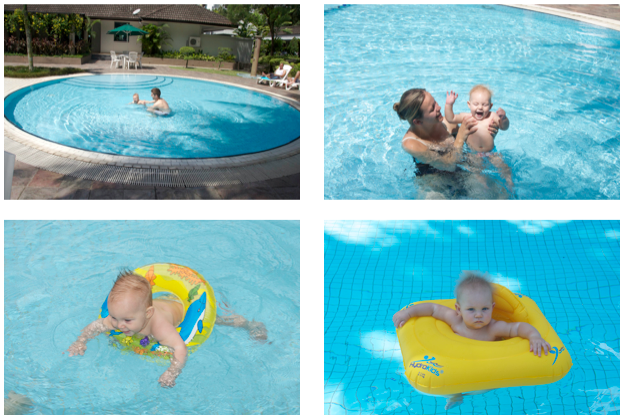 Nasze mieszkanie w Malezji jest na osiedlu z basenem więc wykorzystujemy ten fakt maksymalnie i prawie codziennie zabieramy ją na pluskanie się w wodzie (ja w tygodniu, Piotrek w weekendy).