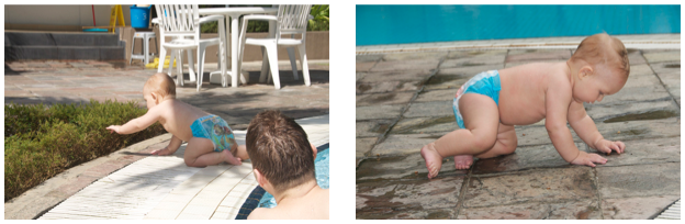 When we go to the pool together, Piotr is usually engaged in teaching Maya to swim, or more to get her used to the water, sometimes taking her underwater for a moment. What we noticed is that she instinctively breaths in and doesn’t let the air out under water. What is important, once she comes up, she chokes a bit and coughs up but doesn’t cry and she continues her splashing :)