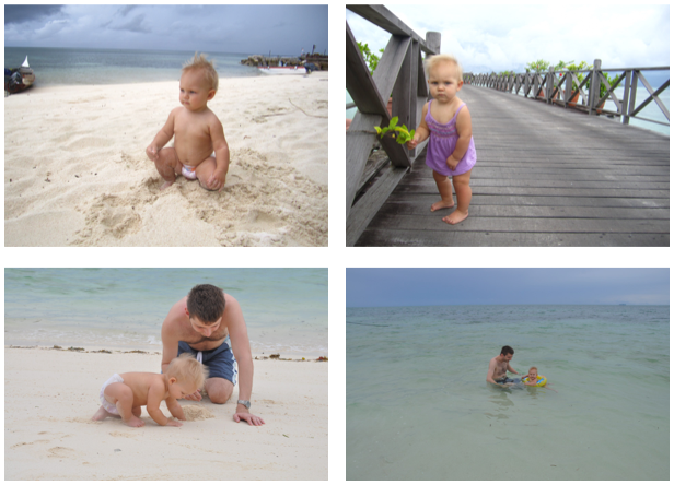 Piotrek głównie nurkował i ja też kilka razy zeszłam pod wodę ale głównie z Mayą spędzaliśmy większość czasu na plaży, w morzu lub w basenie. Zabawa w piachu na plaży sprawiała Mayce dużą frajdę i piasek nie za często lądował w buzi. W morzu popływała kilka razy, i nawet zaliczyła wizytę na rafie - my snorkelowaliśmy a Maya w kółku kręciła się koło nas. Dbaliśmy tylko o to żeby ją gdzieś nie zawiało za daleko ;) Basen na wyspie też zaliczliśmy kilka razy, a Mayce szczególnie się podoba jak inne dzieciaki wygłupiają się w wodzie.