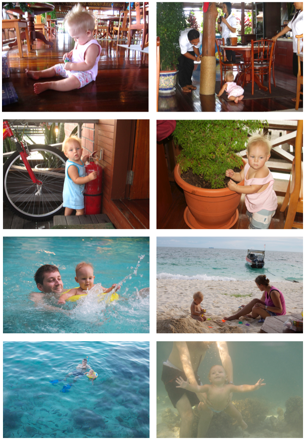 Piotr’s main activity during the stay was diving but I also managed to go under water a few times, but mainly I spent time with Maya on the beach, or by the pool. She really enjoyed playing in the sand and with the sand and she doesn’t it it too often. She swam in the sea a few times as well and also visited the reef - we were snorkelling and she was sort of following us in her swim ring. We just made sure she doesn’t go too far from us ;) She swam in the pool as well and she especially likes watching other kids fooling around in the water.
