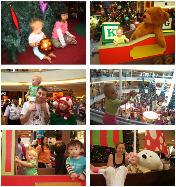Maya met Santa Claus for the first time and she wasn’t afraid and didn’t have any problems sitting on his lap. She also has a lot of photos with trees, Santas, snowmans teddy bears and other decorations, mainly we took at Mega Mall. She is pretty popular here as well as she was in Korea, so people often ask if they can take photos of her or with her. I’m thinking of getting her a T-shirt with a logo “1 Photo - 1 Rinngit” ;) We would definitely earn some dough :)