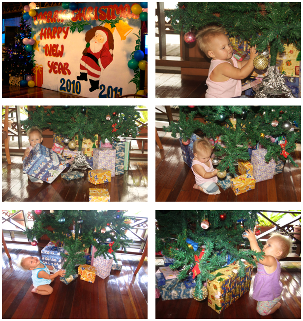 In the resort the restaurant was full of Christmas decorations, and of course there was a big Christmas tree as well. At least 3 times a day (during the meals time), the tree was harassed by Maya, the balls were being played with and the presents underneath constantly changed their positions. Two balls landed in the water (gifts for the fish) and I managed to save the rest ;)
