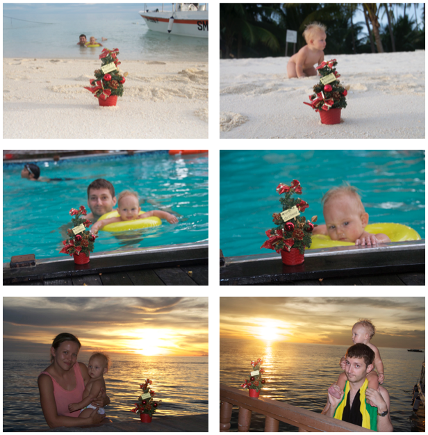W święta postanowliśmy też zabrać na wycieczkę naszą choinkę więc udało jej się odwiedzić plażę, basen, zaliczyć zachód słońca a i nawet na rafie była tylko że Piotrek wziął nie ten obiektyw co trzeba i nie za wiele widać. Ale była :)